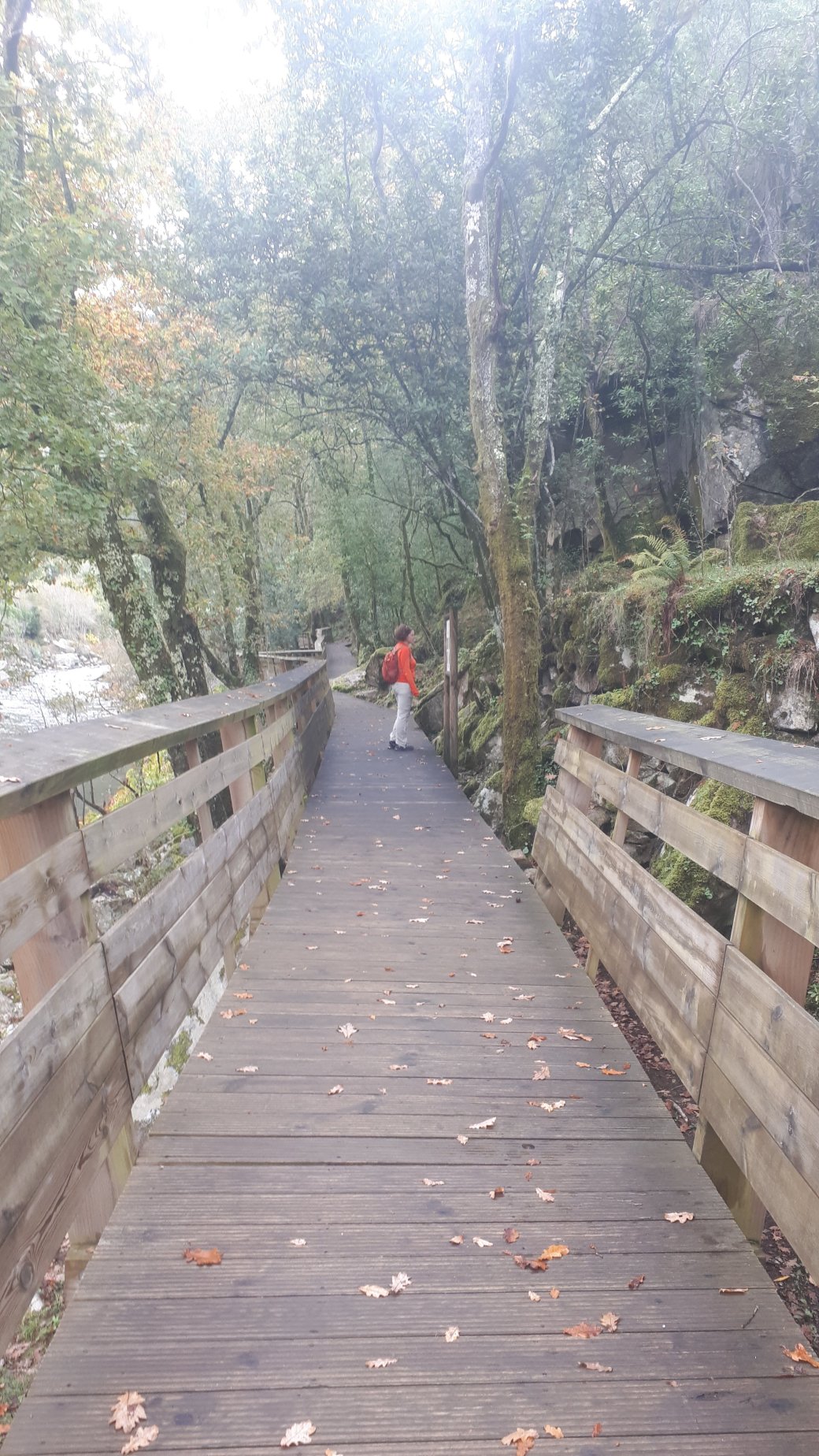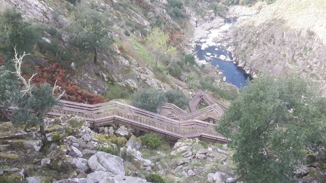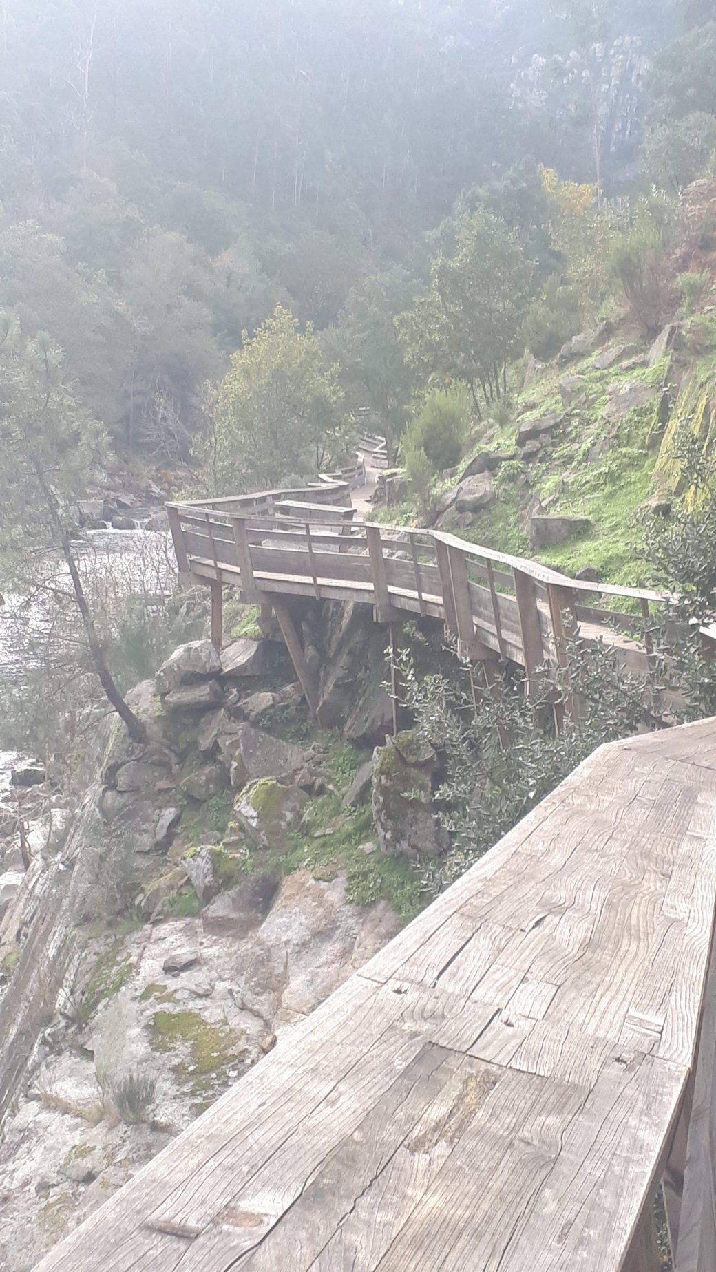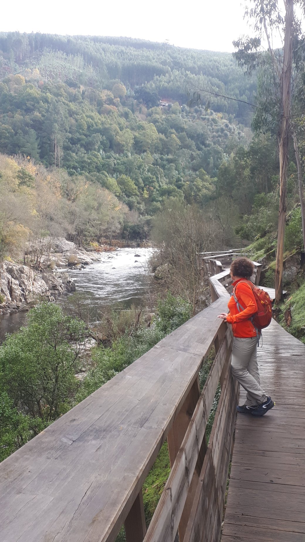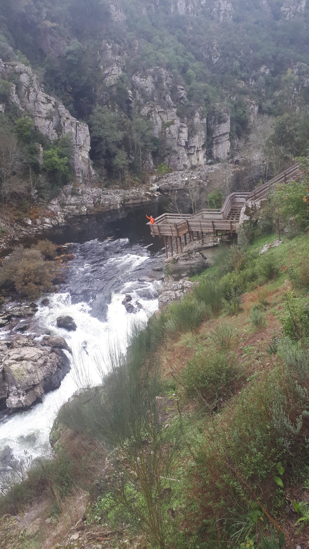 Noua allons parcourir un aménagement extraordinaire, très bien conçu de 8 km de passerelles en bois d’escaliers et de sentiers forestiers pour longer le Rio Paiva.
