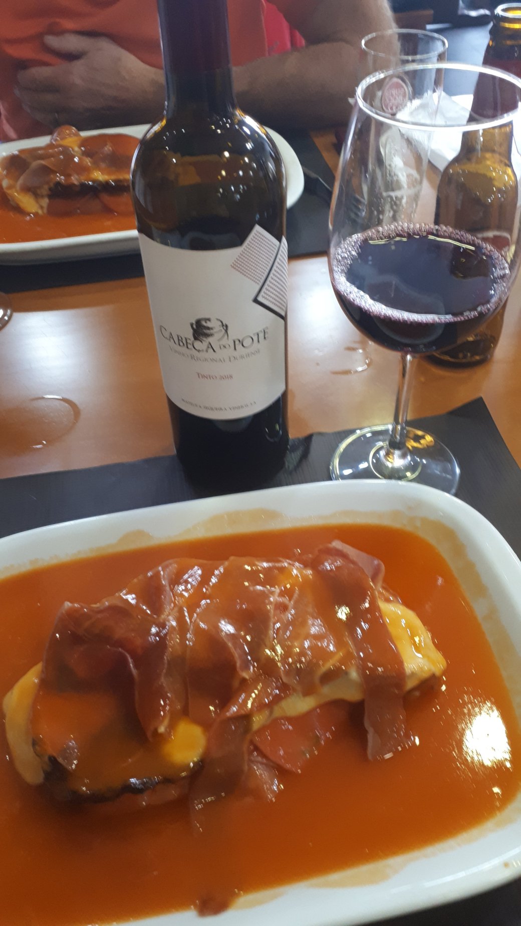 Ici une francesinha et un dessert moelleux accompagné d’un vin du Douro.