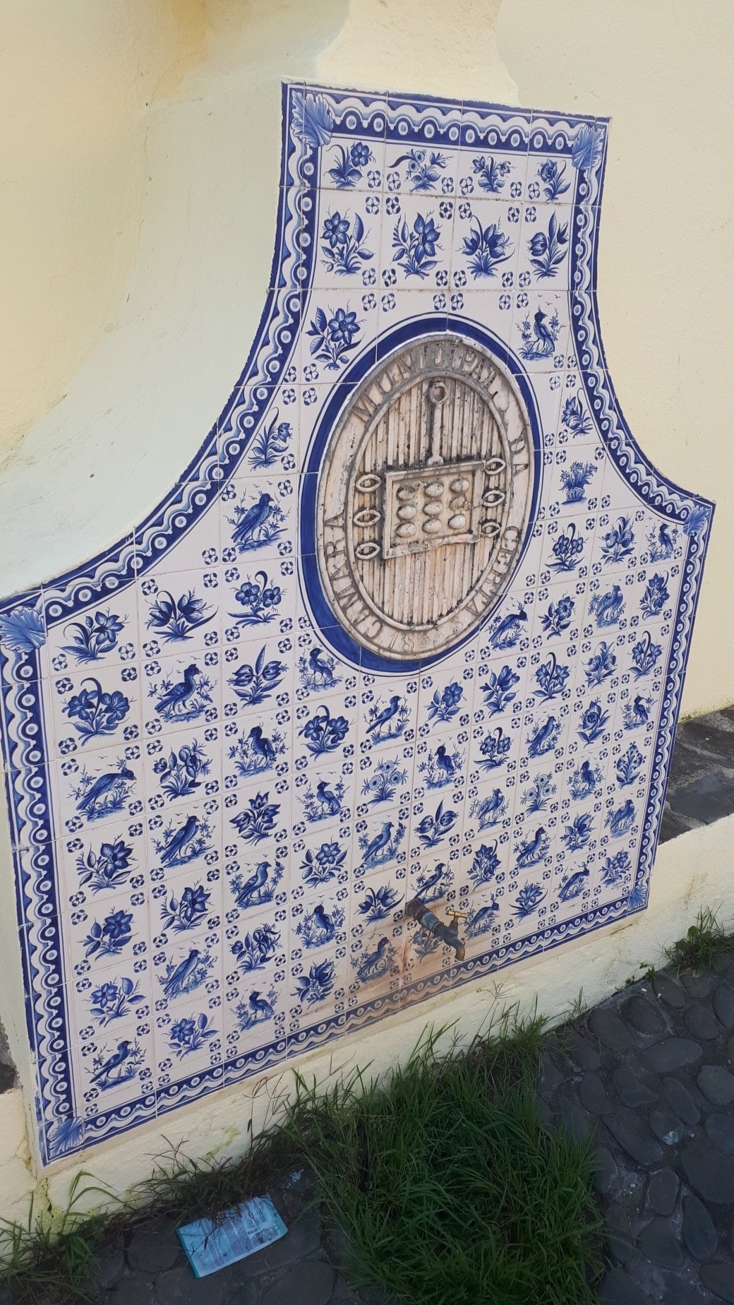 l’azulejos d’une fontaine datant de 1901 en y regardant de plus près de nombreux détails font que pas un oiseau n’est pareil.