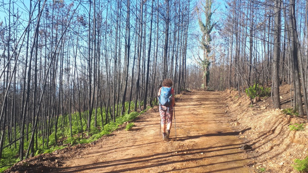 dans la serra Alvéolos, nos 14 kilomètres se feront dans des forêts carbonisées. Les quelques hameaux que nous traversons portent des traces douloureuses de cet incendie.