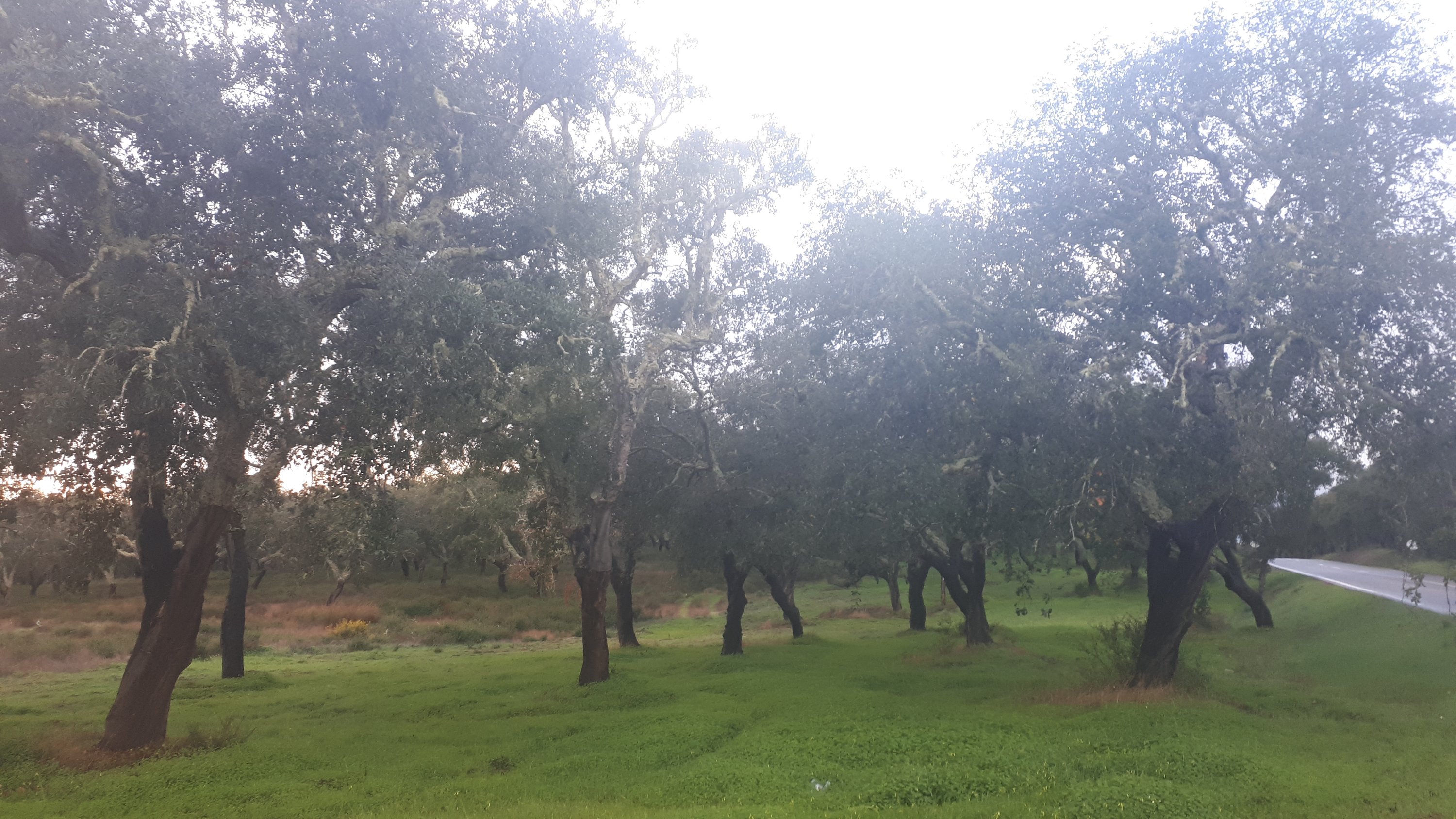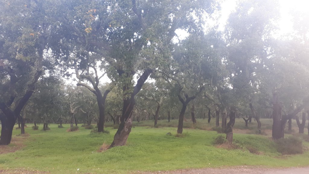 Région de l’Alentejo, les chênes liège avec une verdure vivifiante qui nous éblouit car cette été tout était jaune grillé.