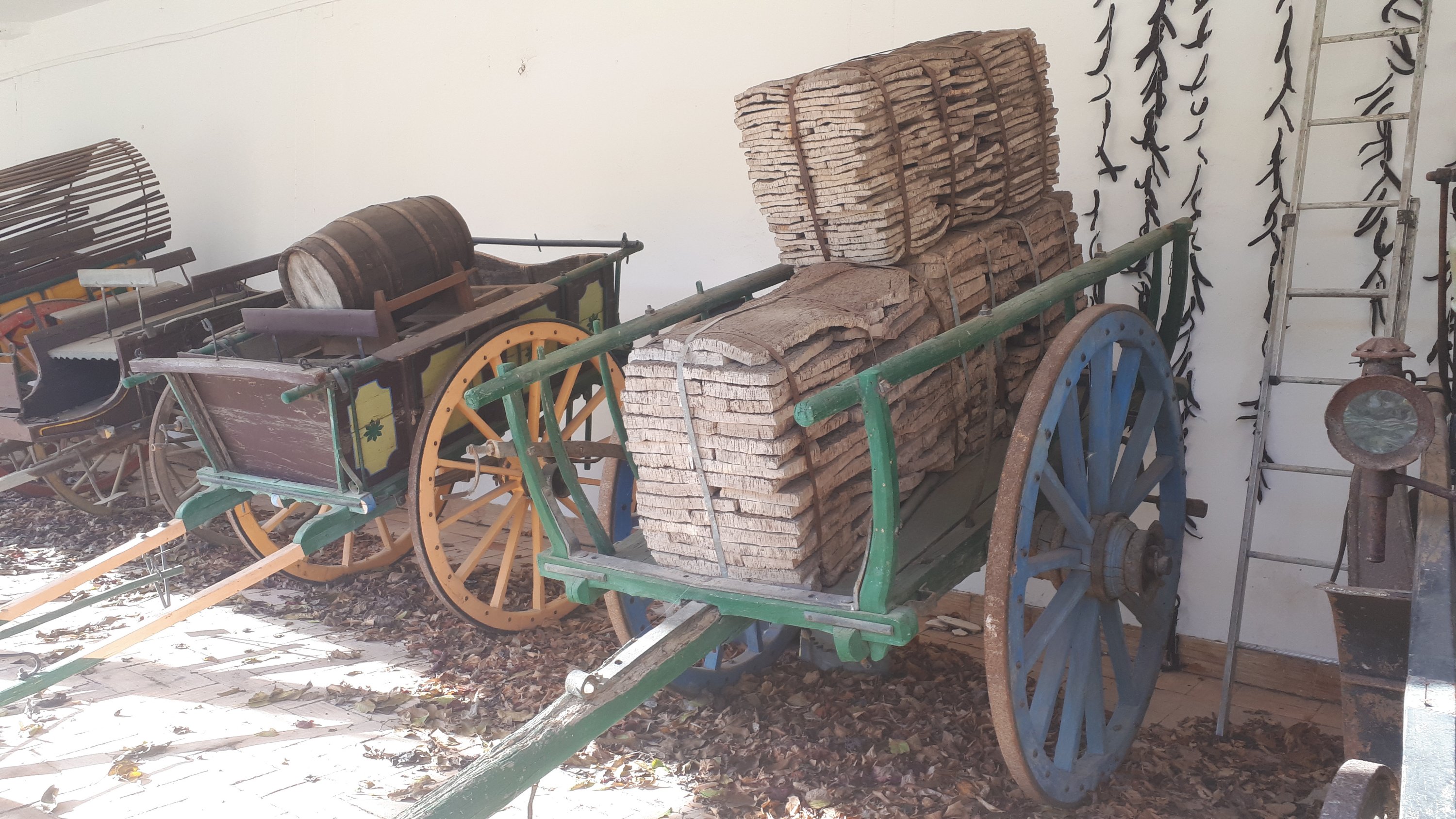 Nous nous contenterons d’admirer les anciennes calèche portant des pots ou amphores, du liège ou un tonneau.