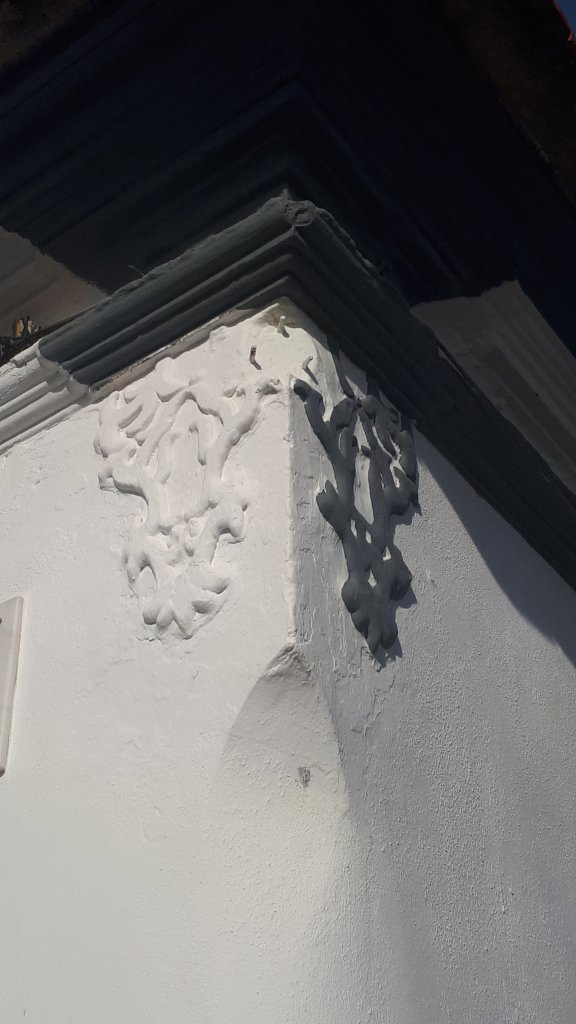 Dans les rues, toujours lever la tête, voici un angle superieur d’une maison avec un symbole dont il nous manquera l’explication.