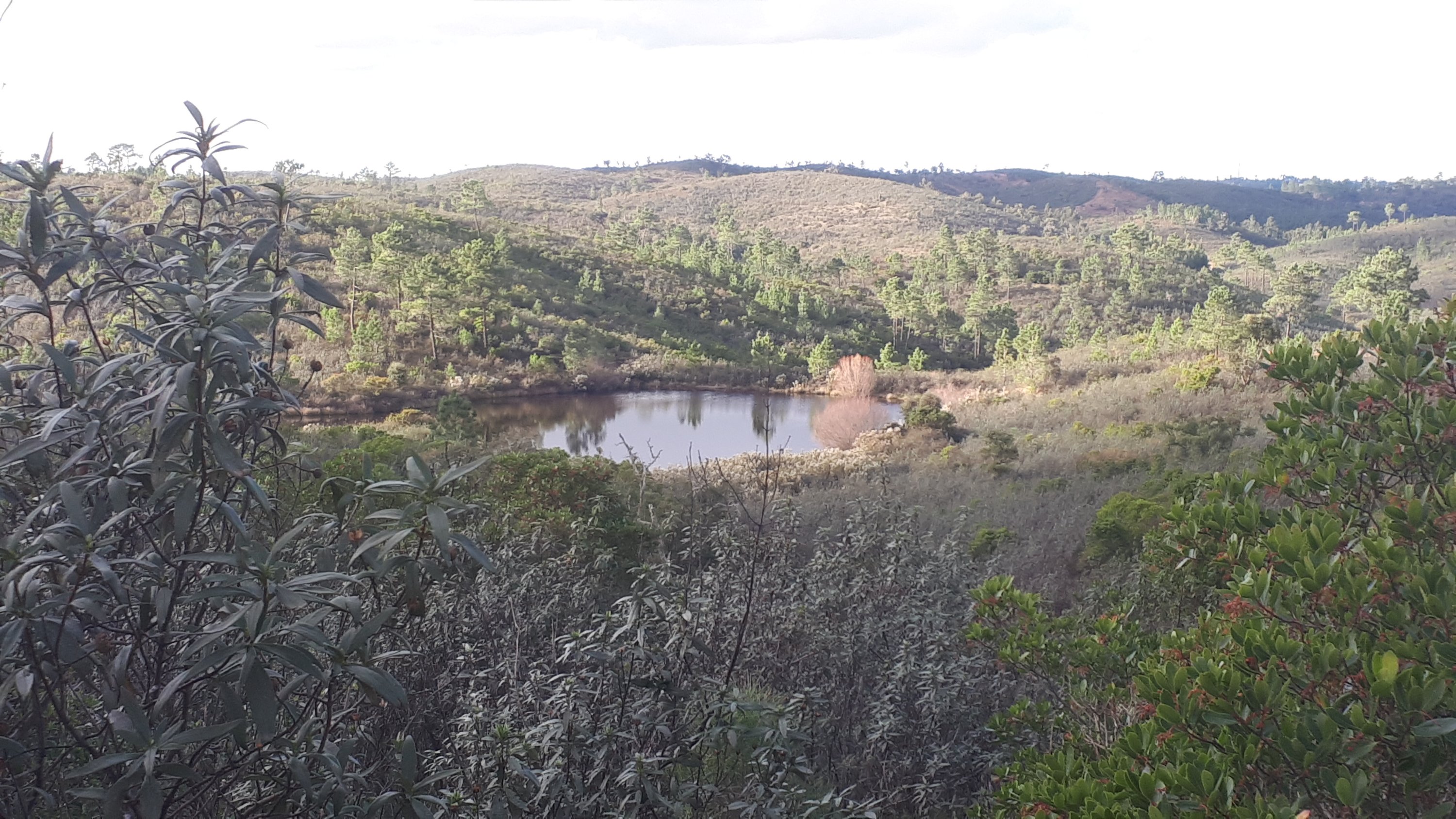Une balade digestive encore un regard sur ces petites montagnes alors qu’un arbre mort prend la pause. Plus loin un lac blotit dans un vallon nous invite à flaner mais il faut nous rendre au but de notre déplacement.