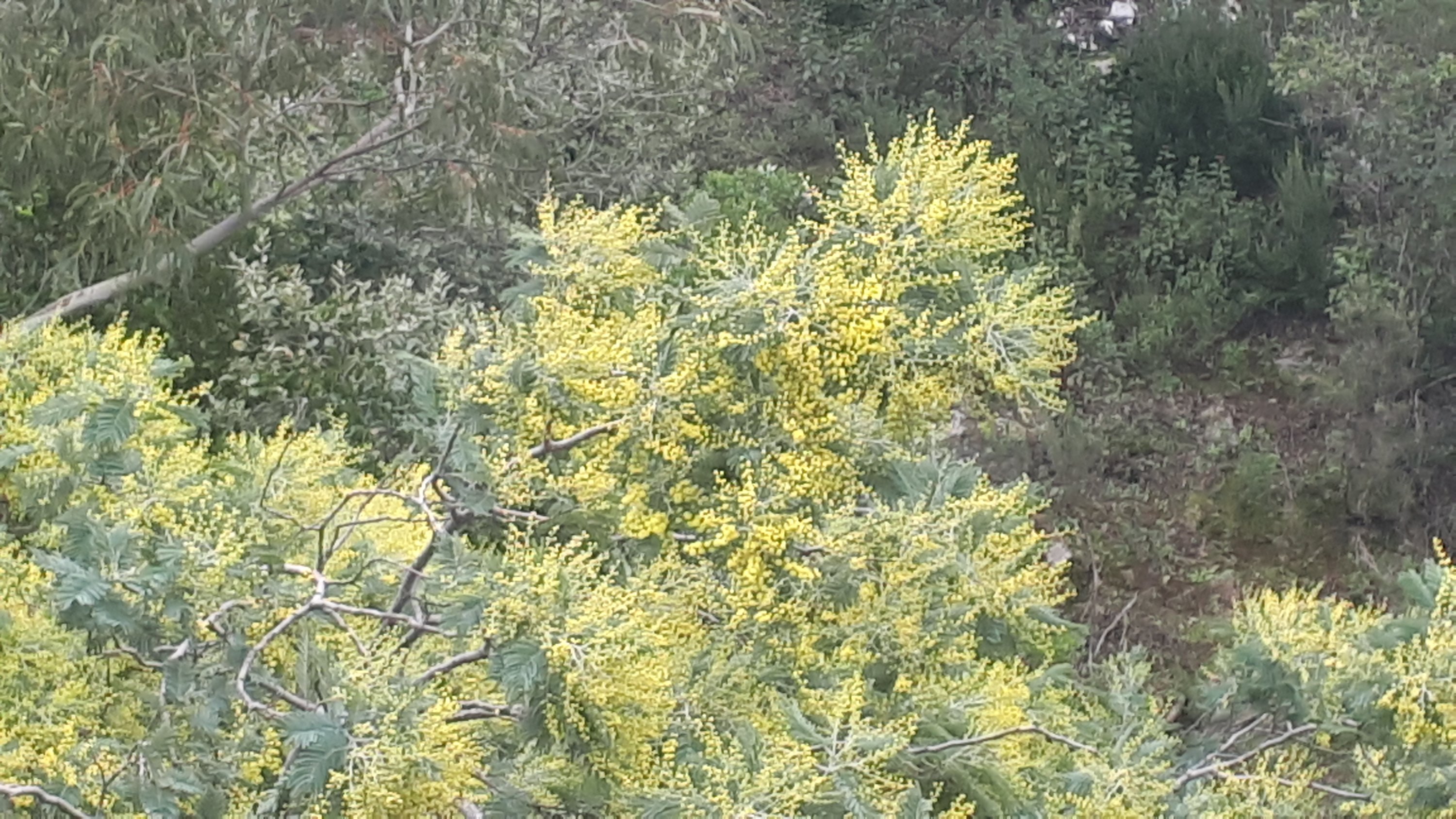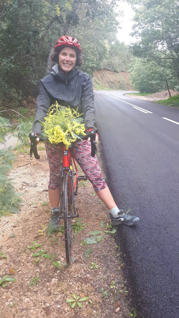 Dnas ce vallon abrité que nous passons en vélo, belle surprise visuelle et olfactive. Ces voutes de mimosa qui nous ovationnent à notre passage.