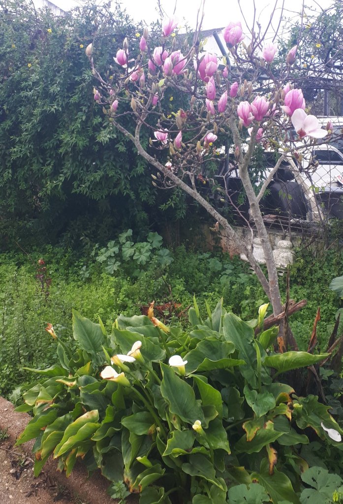 le magnola se prépare a faire exploser ses fleurs envoutantes et quelques orangers lancent le premice de leur floraison odorantes.
