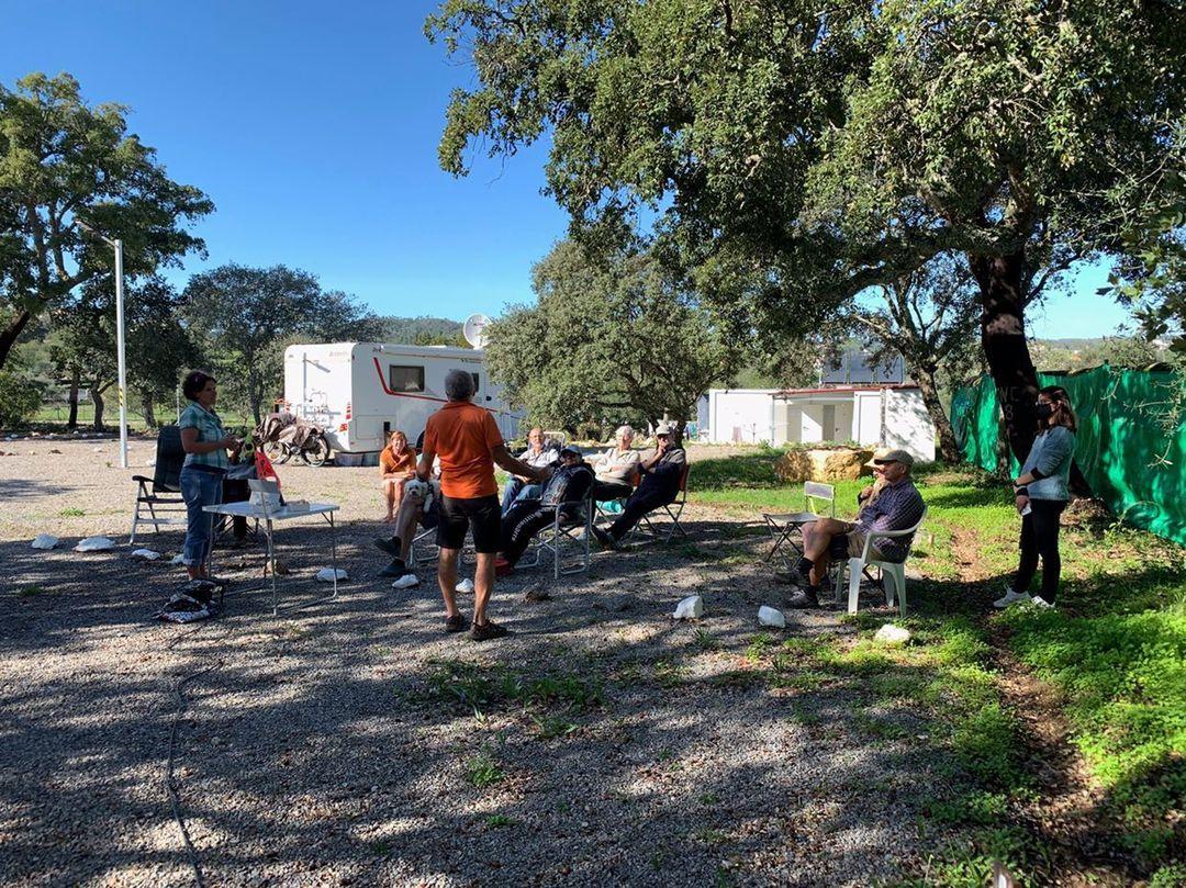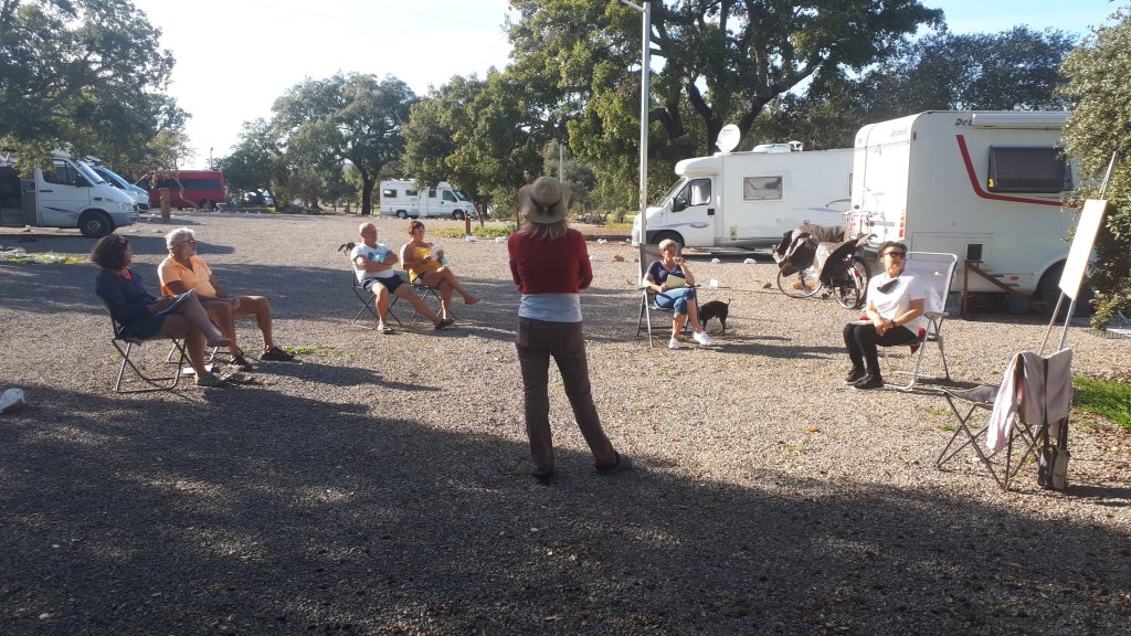 La présentation de notre voyage en vélo au résidents du camping.