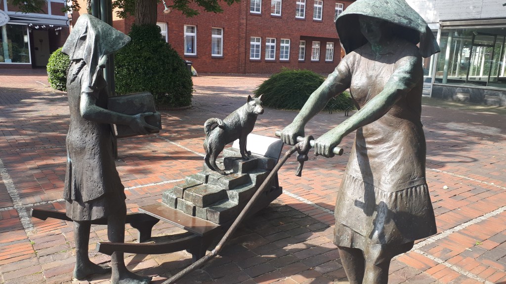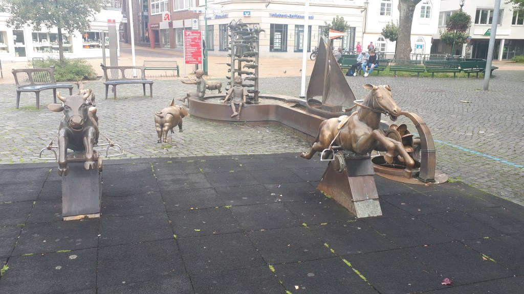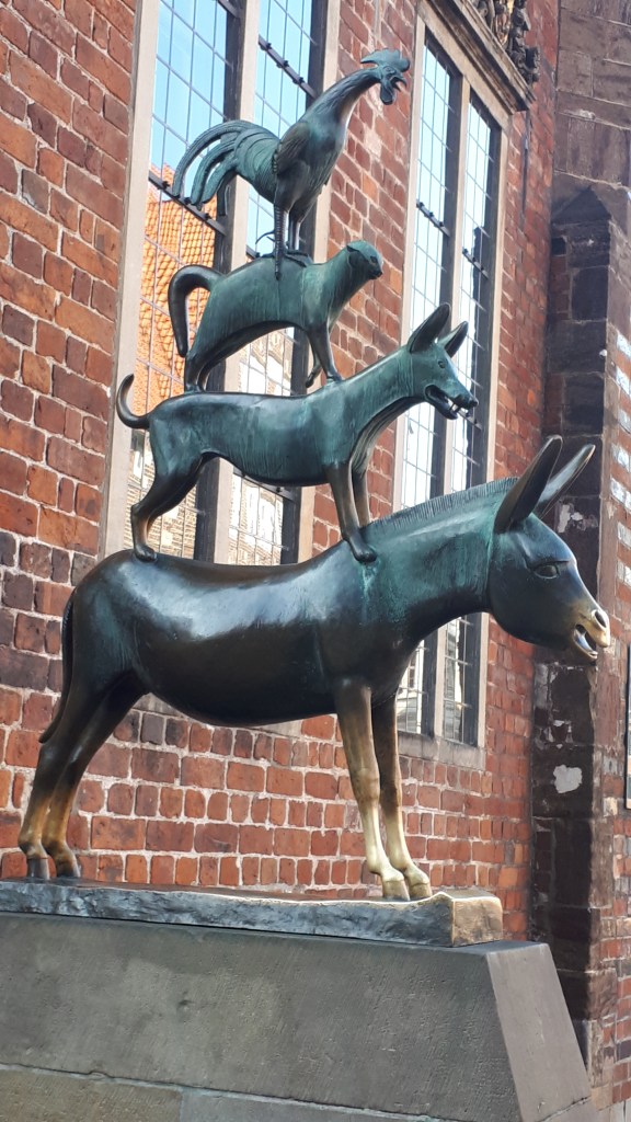 Avec nos vélos, nous avons remonté la rivière Weser, découvrons la ville de Brême. Ville connue grâce aux compte des frères Grimm. Les fameux musiciens de Brême qui en ville s’adapteront à de multiples situations.