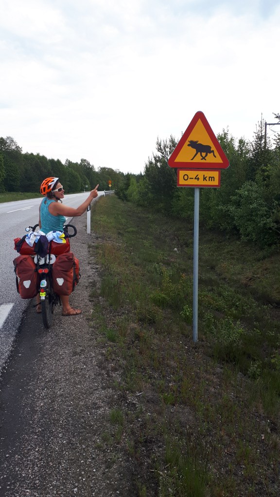 L’on sait qu’il faut s’éloigner des zones à forte habitation et cela signifie dépasser Stockholm, c’est d’ailleurs après cette ville que nous voyons ce panneau qui me réjoui.