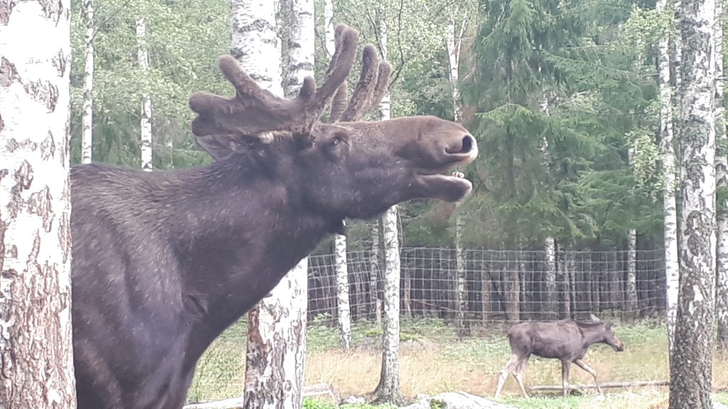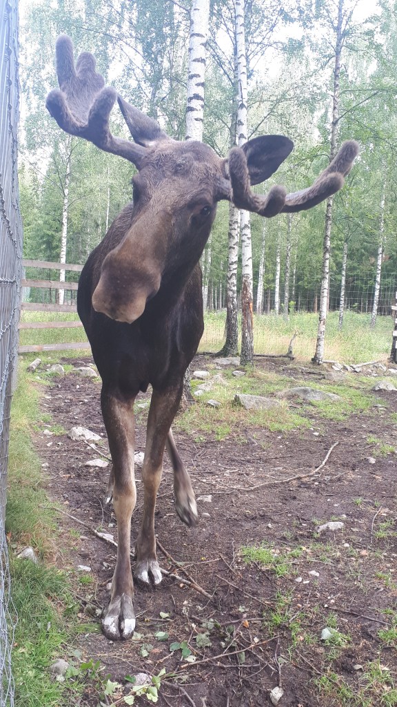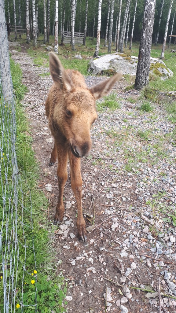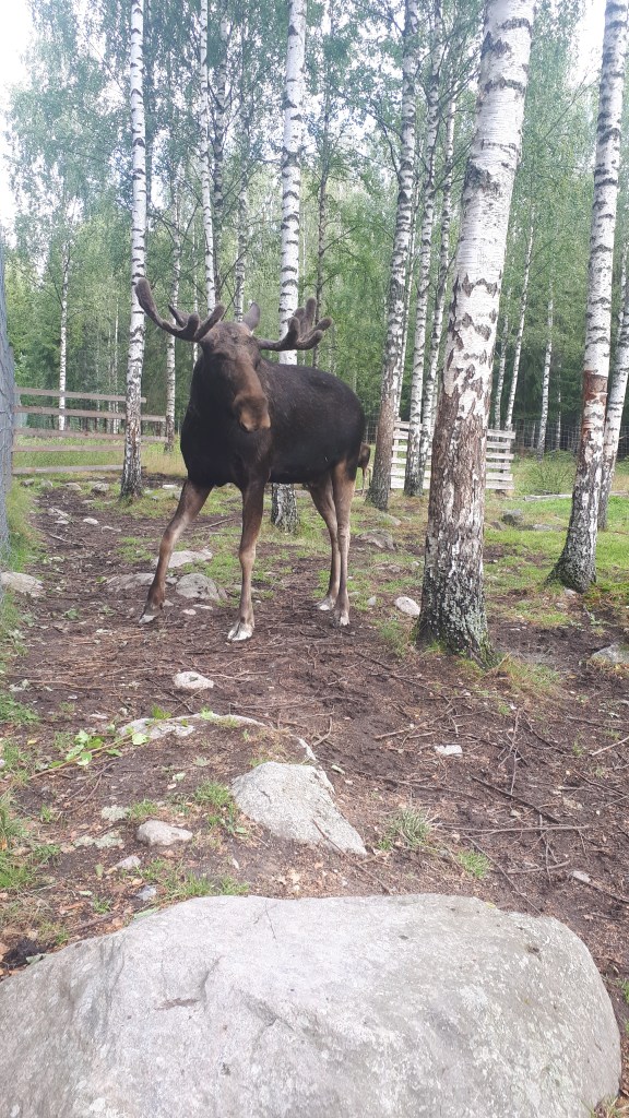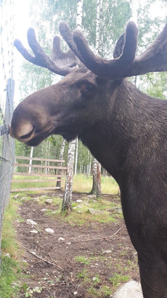 Quelques jours plus tard curieux de découvrir ces animaux de plus près, nous nous rendons dans un parc a élans. En Suède ce type de parcs sest fréquent, il ne s’y trouve que des élans apprivoisés.