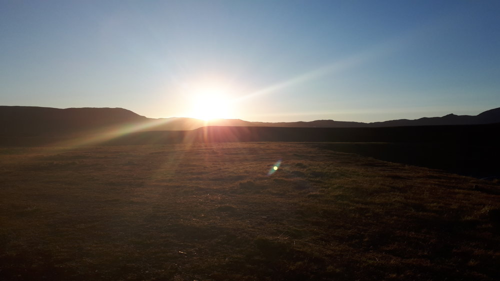 La velum installée pour nous proteger des moustiques et profiter du soleil qui ne se couche point sous ses latitudes, nous prenons notre repas.