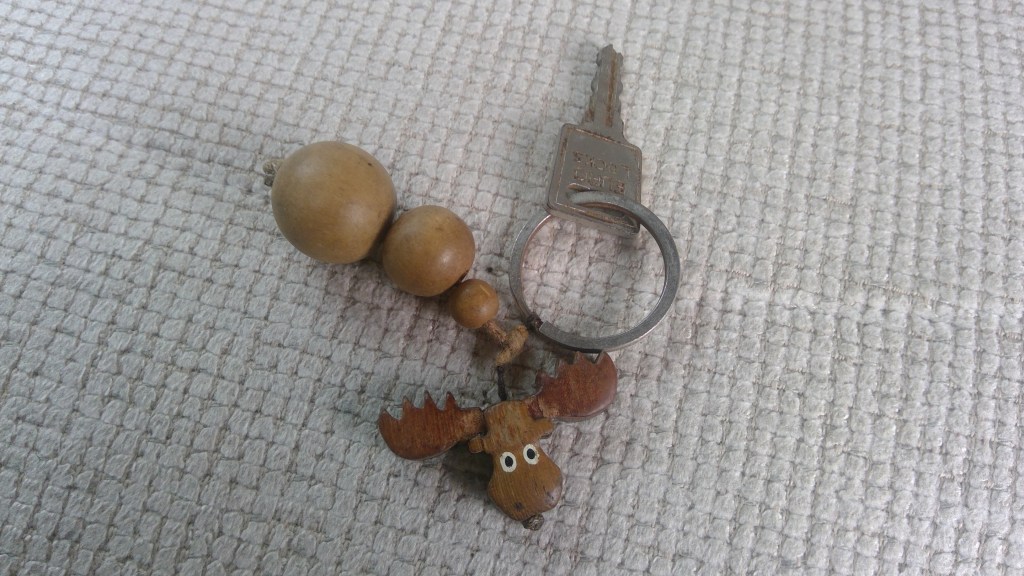 Des panneaux routiers « danger élan » jalonnent régulièrement la route mais l’animal est bien discret. Mon impatience grandit et Laetitia pour me calmer m’offre un porte clef avec une tête d’élan et un auto collant installé sur mon garde boue arrière.