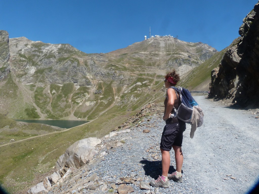 Le chemin pour monter au pic du midi part à gauche de la maison qui vend les souvenirs quand tu regarde le géant.