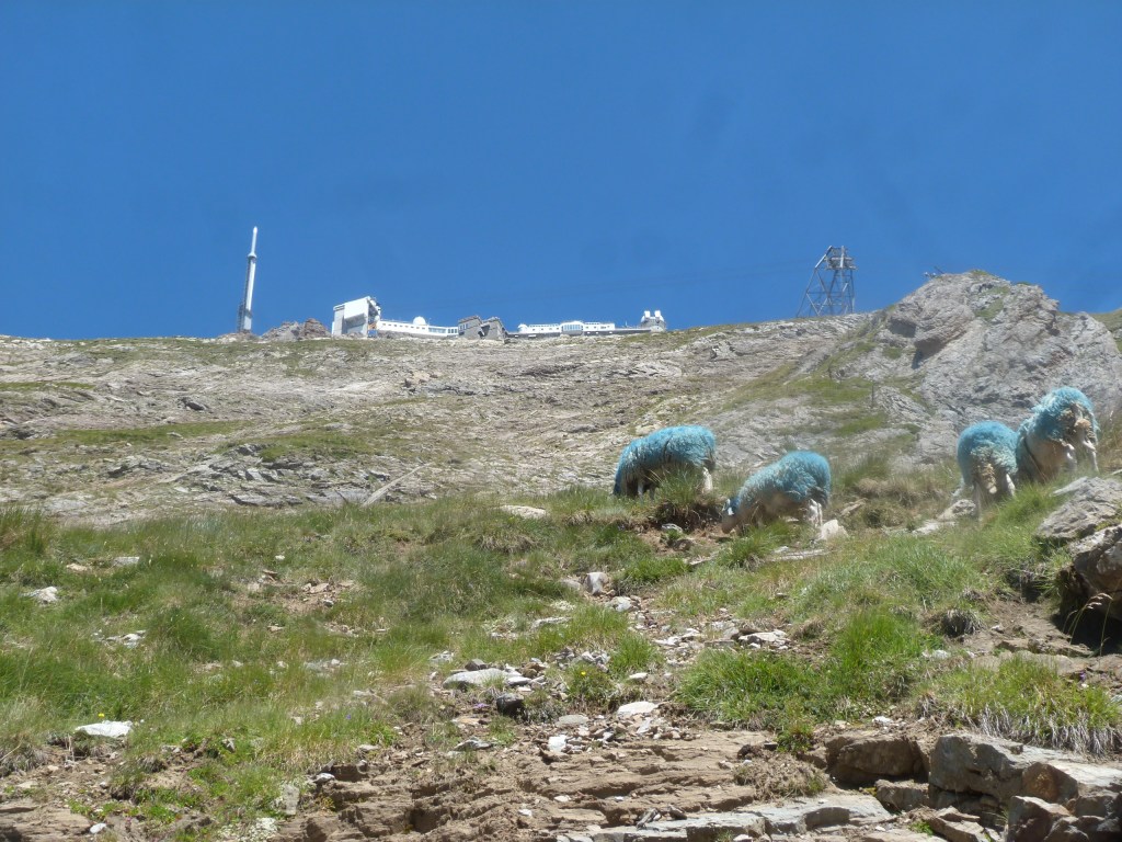des moutons bleus!! Et les antennes du Pic qui nous guettent.