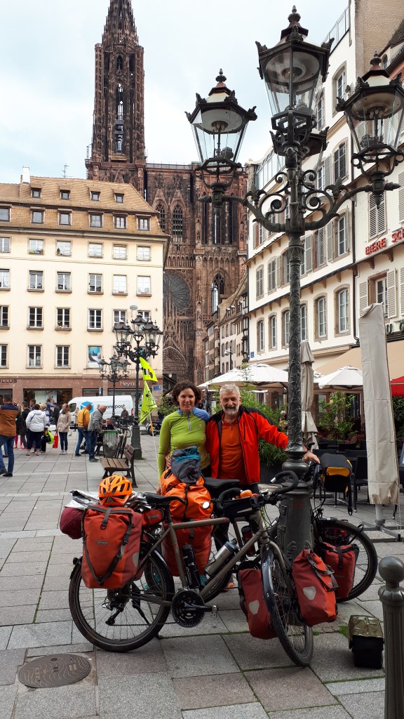 On suit le canal de la bruche et c’est très facilement que nous arrivons a Strasbourg. On y mange un bon repas alsacien dans un winstub.