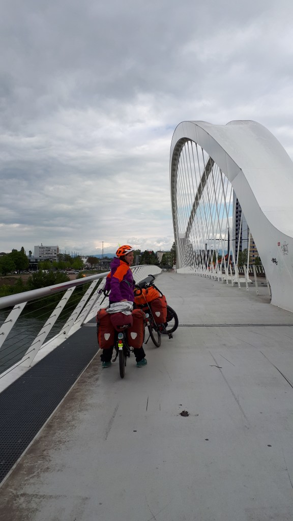 On emprunte le nouveau pont cyclo-tram pour traverser le rhin et nous voici en à Khel en Allemagne🇩🇪.