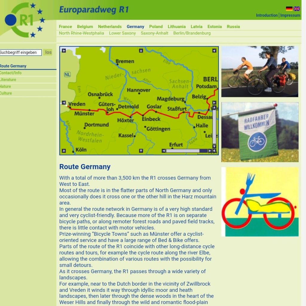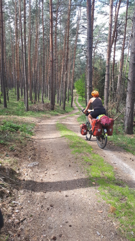 Les pistes cyclables s’enchainent et les balisages aussi. Voila que nous trouvons la europaradweg 1 qui va de Saint Pétersbourg à Boulogne. Parfait pour nous, elle passe par Berlin et on peut profiter de belles cabanes.