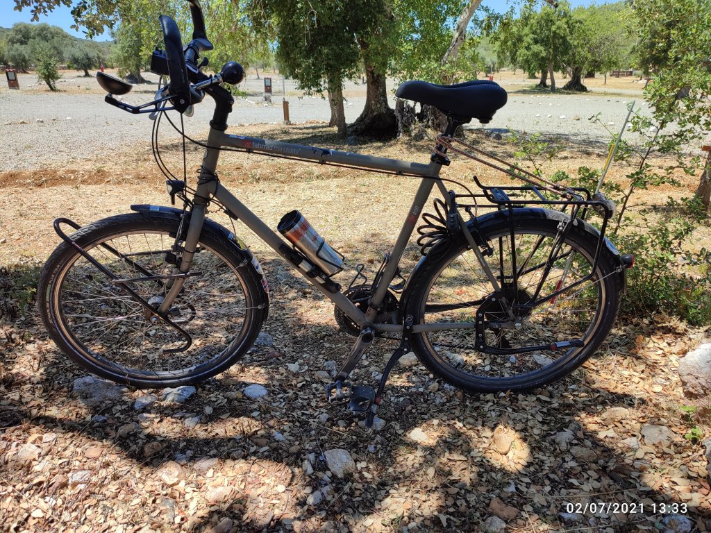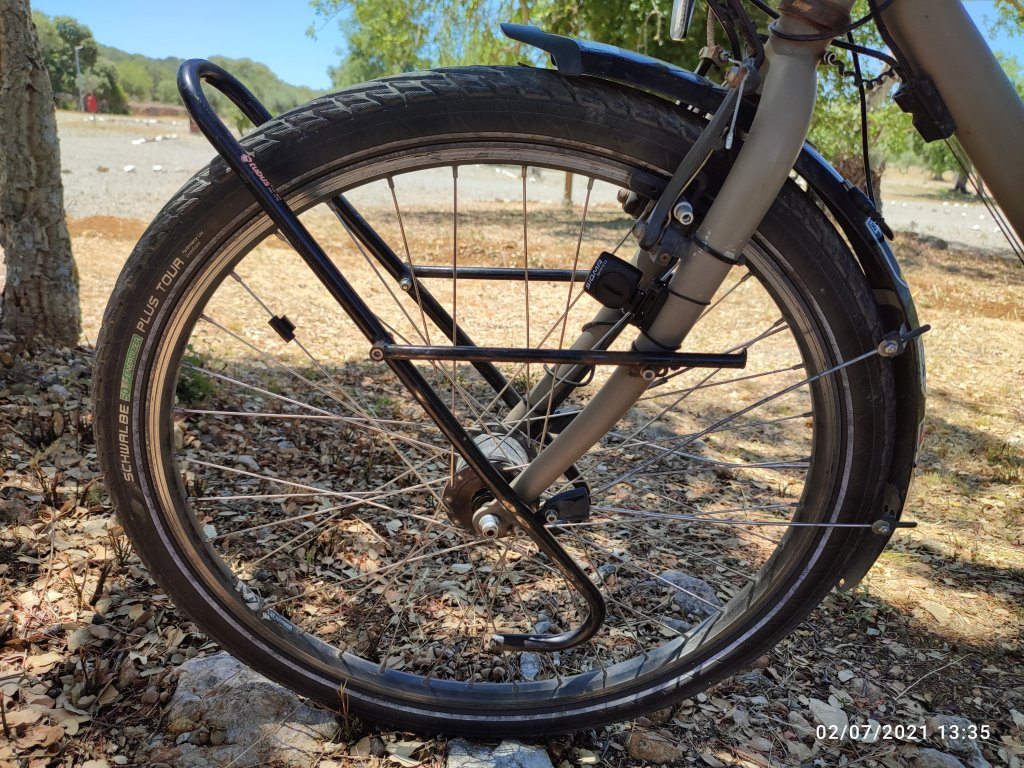 Les pneus? Nous optons pour des » Schwalbe marathon plus « , increvables. Lors de notre voyage de 21 000 km, les 4 crevaisons que nous avons supportées étaient dûes à des pneus d’une autre marque ou une forte usure, par inadvertance de notre part. Pour en savoir plus sur la qualité de ces pneus aller faire une visite sur le site de Schwalbe.