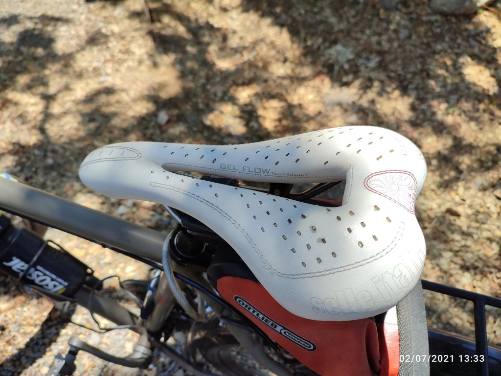 Moi jusqu’à présent j’avais la selle d’origine de marque selle Royale qui m’offrait une assise… royale! Mais bien fatiguée pour avoir supporté aussi longtemps mon arrière train, je viens de la changer. J’ai racheté une selle de même marque un peu plus large avec aussi une gouttière en son centre pour le périnée. C’est l’avenir qui me dira si le choix est bon. Lors des premiers coup de pédale mon fessier ne se plaint pas et à apprécié l’assise; bien entendue royale.