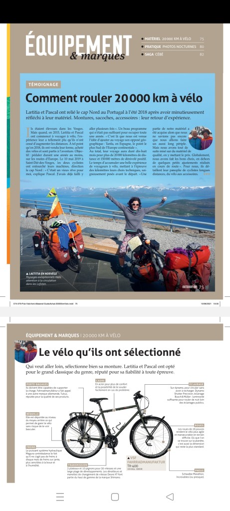 Enfin pour conclure dans la revue Outdoor go de ce mois-ci, il y a tout un article nous concernant sur le matériel que nous avons utilisé pendant notre périple de 16 mois.