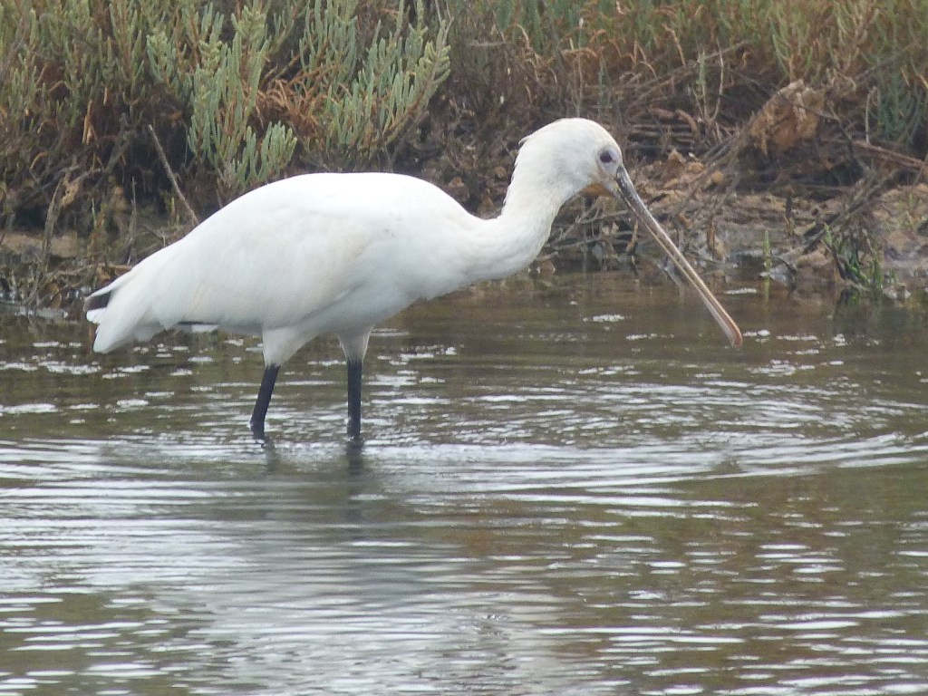 Nous voici dans les lagunes et quelques échassiers se régalent, mais c’est la spatule qui prend la pose.