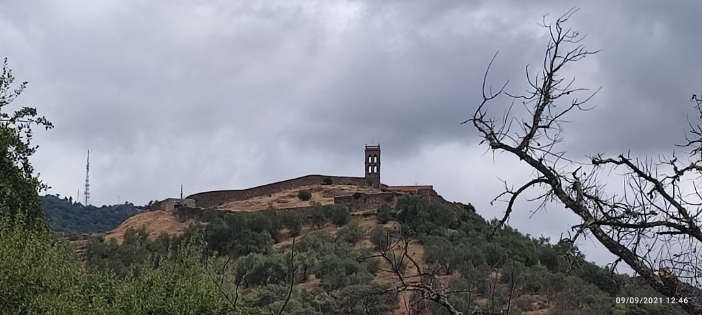On retrouve des forêts de feuillus avec des chênes vert, des châtaigniers… la route est ombragée et au détour d’un virage, la vision d’une église forteresse au sommet d’une colline nous apparaît.