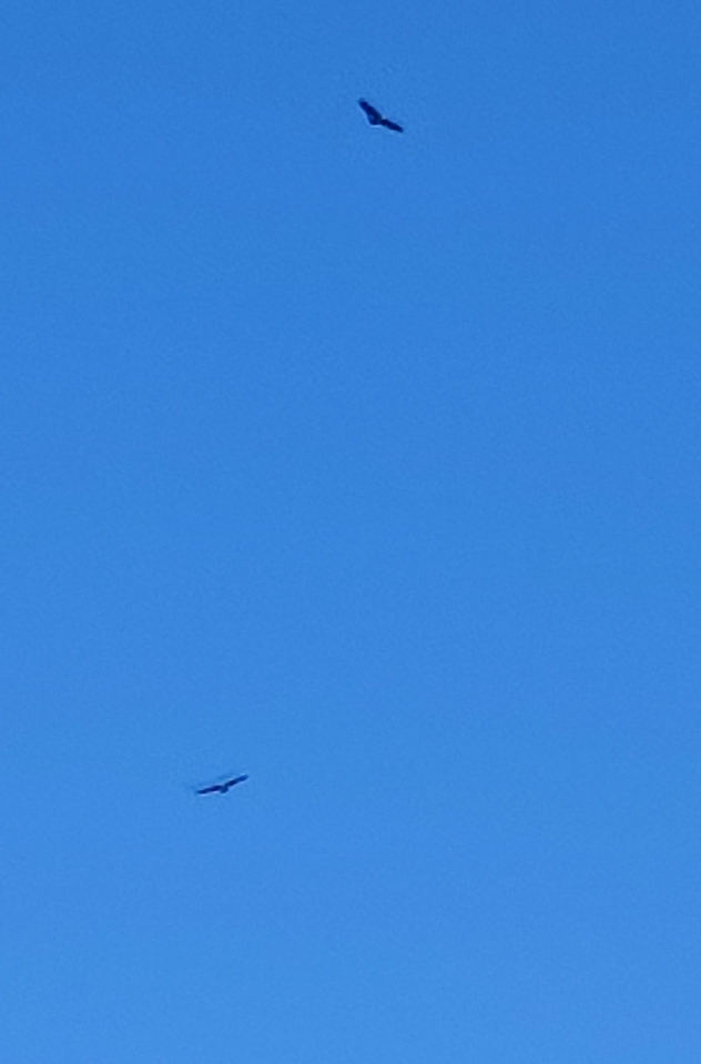 Les vautours dans leur vol plané se déplacent avec douceur, lenteur et silencieusement. Sauf si vraiment ils se rapprochent on entend le vent dans leur ramure.