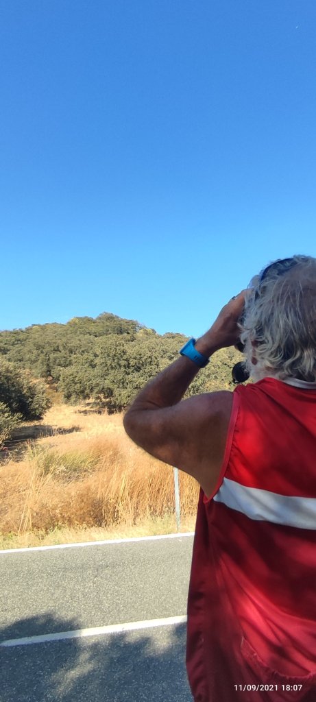 La route que nous empruntons est d’un calme inimaginable, mais cela nous va bien et nous permet d’observer un vol de vautour.