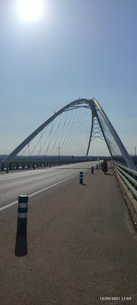 Arrivé à Palma del Rio, nous franchissons le rio Guadalquivir qui traverse Cordoue et Séville, par un pont à l’architecture moderne et élancée.