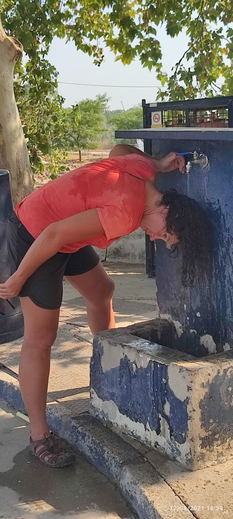 A Ecija, nous avons déjà 67 km dans les jambes, il est temps de se faire une pause repas. Nous trouvons un grand parc avec des bancs ombragés, mais que de monde et d’animation.