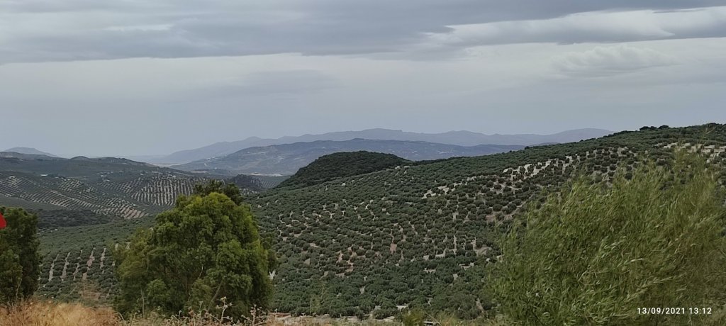 nous dominons un océan de vergers d’oliviers.