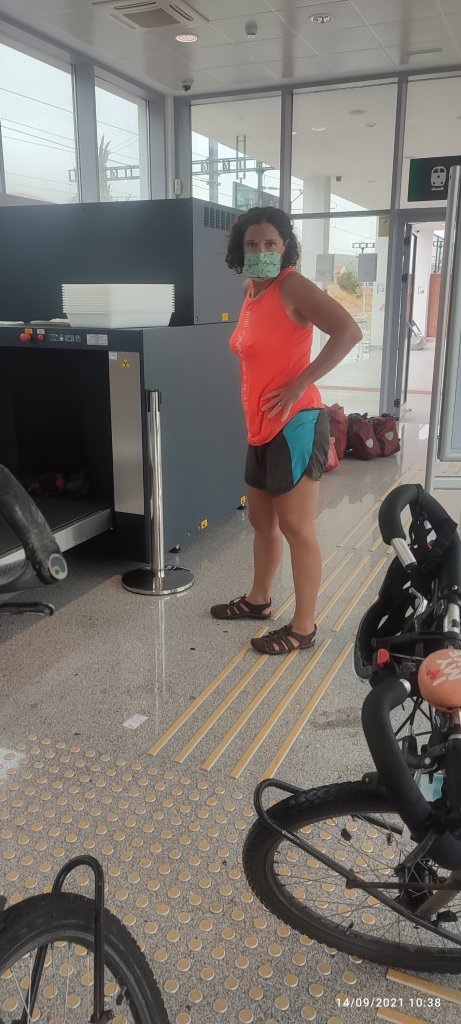 Après 15 kilomètres trempé à l’exterieur par la pluie et à l’intérieur par les côtes qui nous firent transpirer, voici la station et là drôle de surprise tous les bagages doivent passer au scanner.