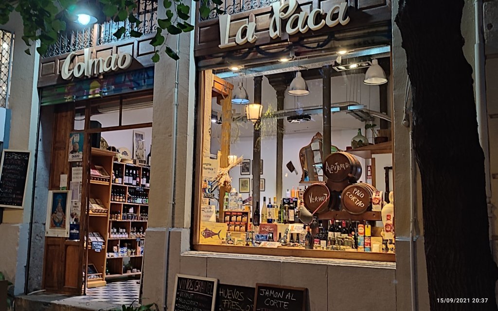 Une boutique où vous trouvez de bon vins, sangria en vrac, jambon et fromage et de plus la gérante parle français.