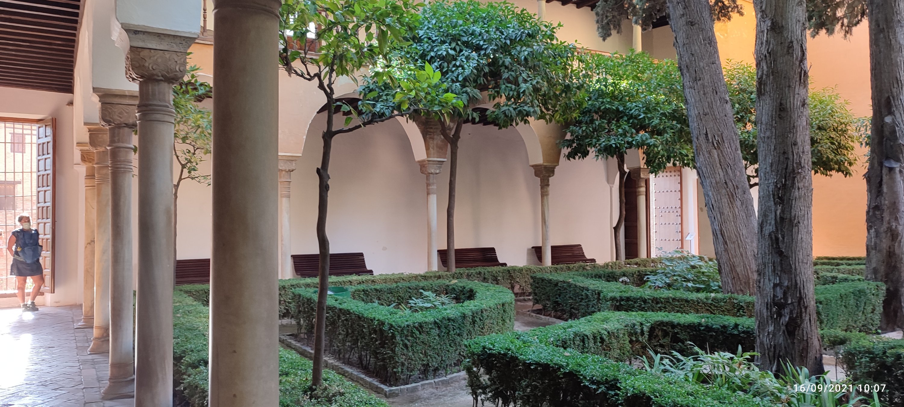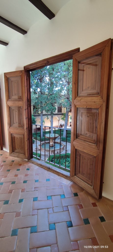 Le patio Lindagara qui était un potager à l’époque des sultans , Charles Quint le transforma, influencé par la religion catholique il lui donna l’ambiance d’un cloitre.