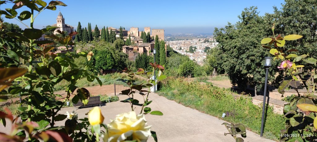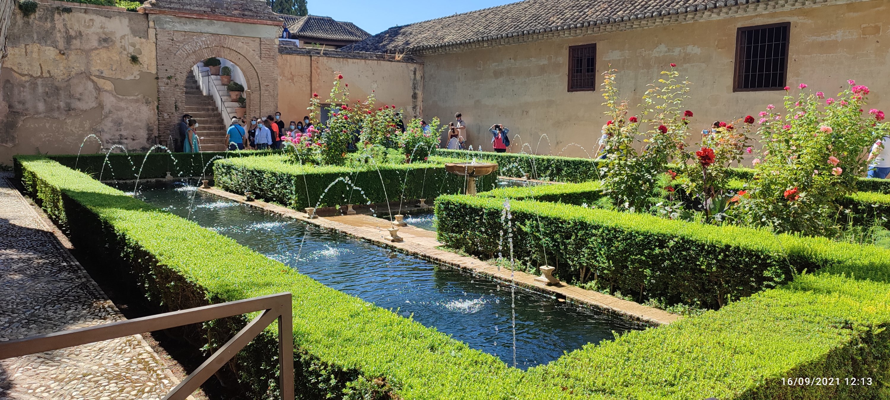 Le Generalife était l’exploitation agricole sur 30 hectares y sont produits fruits, légumes et viande, mais c’est aussi le résidence de détente du monarque surnommé » maison royale du bonheur « . Nous y avons une belle vue sur l’Alhambra.