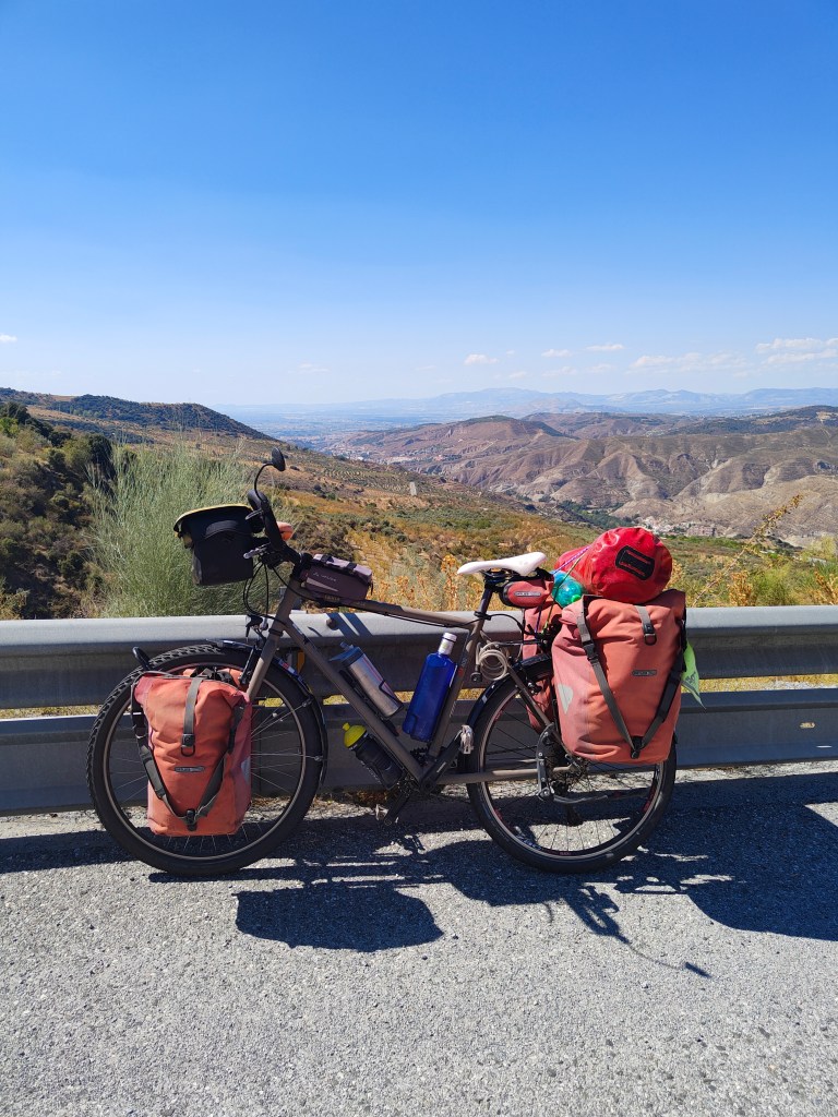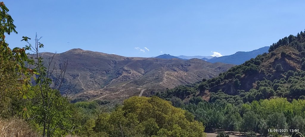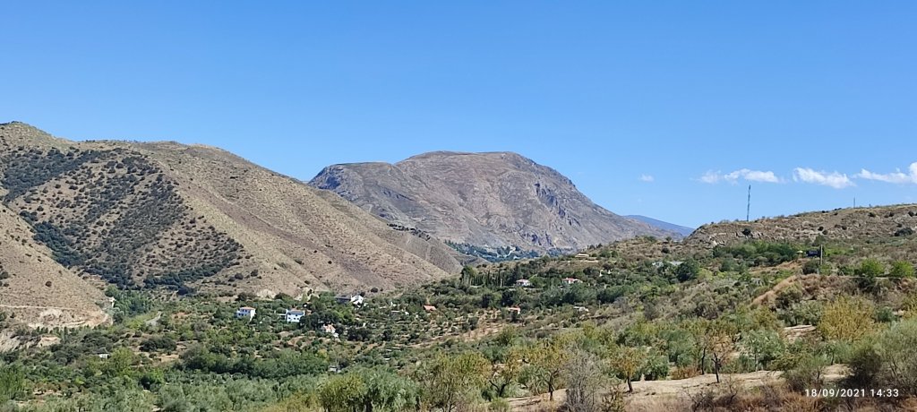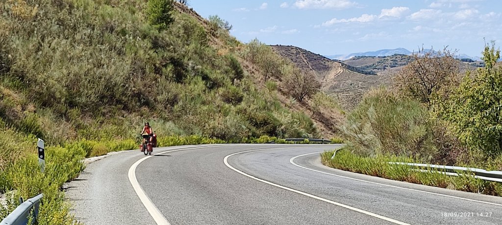 La route qui nous mène dans le coeur de la Sierra Nevada s’élève maintenant avec une pente régulière de 6 à 7 %. Rapidement nous dominons la vallée où se niche Grenade.