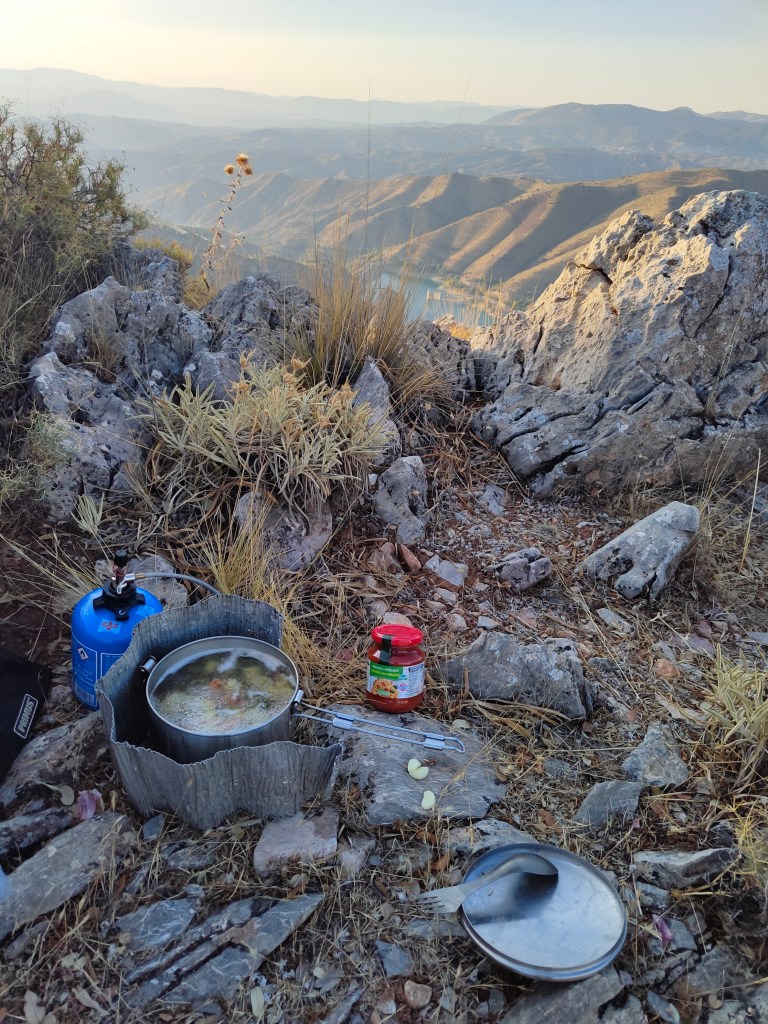 Nous allons rejoindre notre coin de bivouac de la veille, mais il nous faut penser à notre ravitaillement en eau. Un torrent nous offre son eau clair et fraîche, la douche à la bouteille sera froide, mais va nous remettre en état.