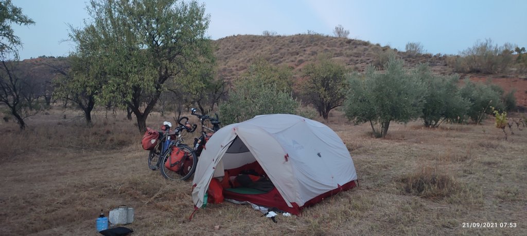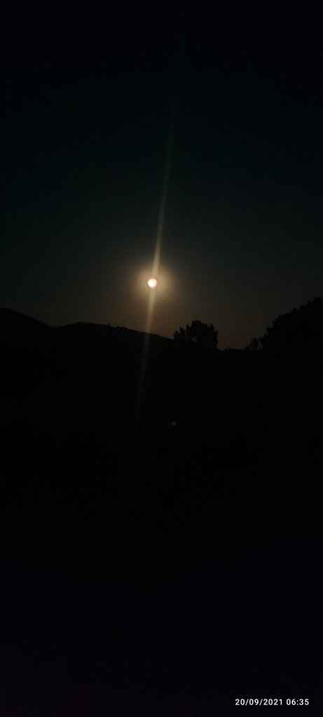 il est 19 heures, un verger d’olivier se présente à nous pour notre nuit et nous assistons à un lent et somptueux levé de pleine lune !