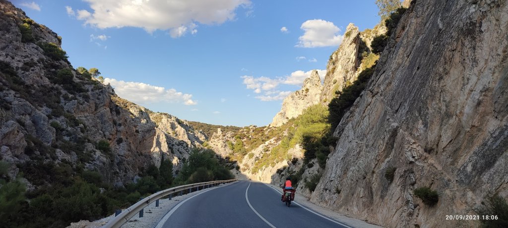La route se dresse, une belle côte qui n’en fini plus, nos muscles nous rappellent que nous les avons déjà bien sollicités hier. Mais ils sont sympa et répondent présent à l’inclinaison de 7% du terrain. Nous ne nous y attendions pas et on comprend mieux la difficulté, nous voici au passage d’un col.