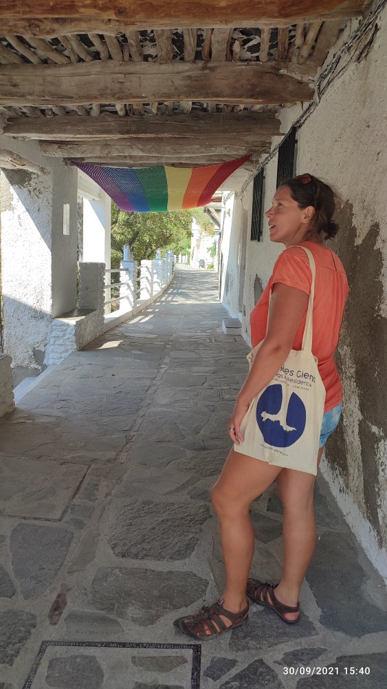 Ces ruelles sont si étroites que l’on a du mal de se dire que l’on va trouver une petite supérette. Et pourtant celle-ci se cache dans le coeur du village et est bien achalandé. Nous reprenons la route espérant trouver rapidement un lieu pour casser la croûte. Mais il nous faudra encore pédaler quelques lieux. Nous en profiterons pour observer la montagne et les villages blanc traditionnel.