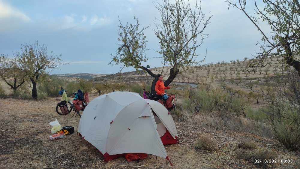 Alors à Ventas de Huelma nous partons pour Cacin et nous verrons bien pour la suite de notre itinéraire. Mais vive le calme ! Après quelques belles côtes nous nous trouvons un petit coin dans un verger d’amandiers. Si le paysage n’est pas exceptionnel