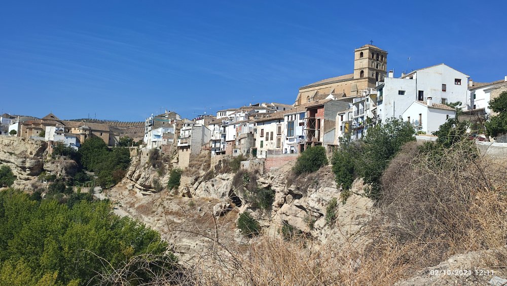 Arrivé au niveau du Rio Alhama, il suffit de 2 km de montée pour arriver au village de Alhama da Grenada. Et dès que j’aperçus cette petite ville je compris qu’elle allé nous accapaer quelques temps. De loin, vu ces monuments j’ai vite saisi que c’était un endroit particulier.