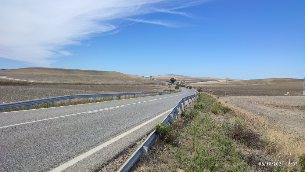 Nous passons le bourg de Puerto Serrano et filons sur Villamartin, fini le calme. Voici la grande route avec sa kirielle de voitures, de camions et le bruit qui les accompagnent. Il est un peu plus de 12h, nous avons parcouru 22 km, hier à la même heure nous en avions fait un peu plus de 50. Les jours passent et ne se ressemblent pas !