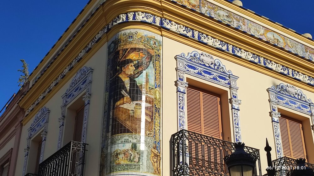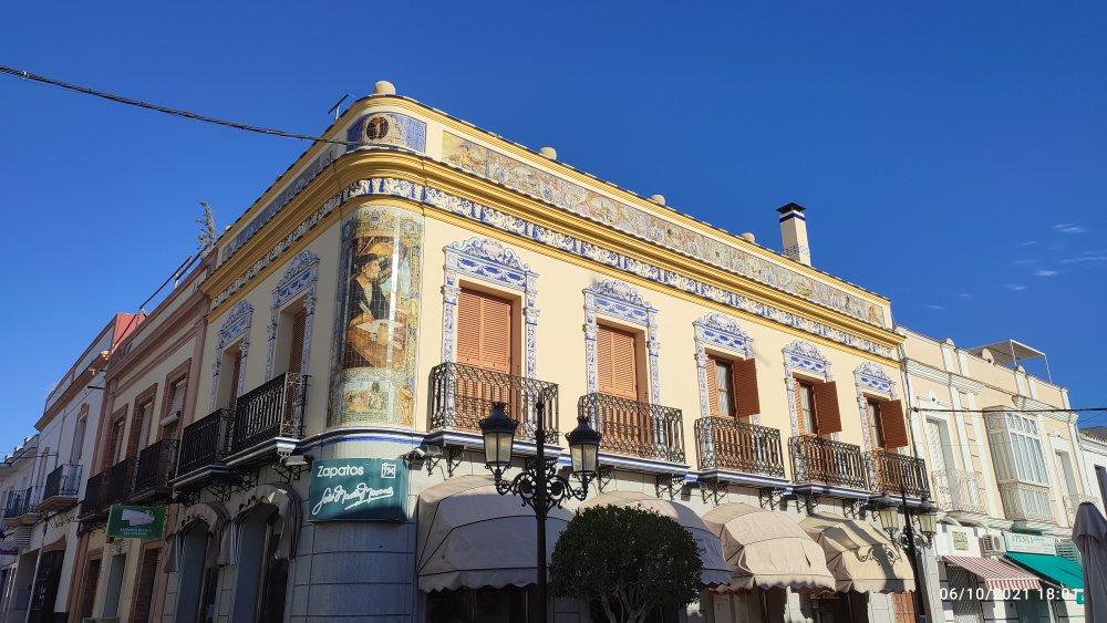 Et alors que nous approchons des 90 km, nous arrivons à Lebrija. Nous avons envie d’une glace et allons faire quelques pas dans cette ville où nous découvrons cette façade extraordinaire.