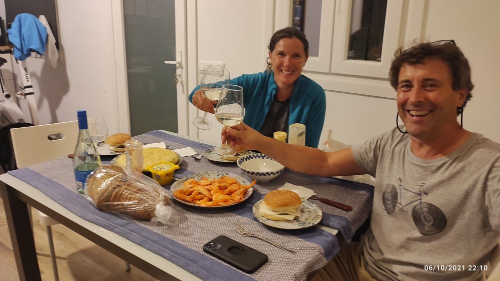 Une demi heure plus tard, nous sommes chez Borja accueilli par un grand sourire et une très bonne humeur. Par contre il ne parle qu’espagnol. Laetitia va mettre toute son attention et son énergie pour comprendre et discuter avec Borja qui adore parler. Moi je tente d’attraper aux passages des bribes de phrases. Lui aussi est sportif et aime le vélo. Nous parlons voyage, vélo… il y a une semaine il a déjà héberger un cyclovoyageur français originaire de Briançon.