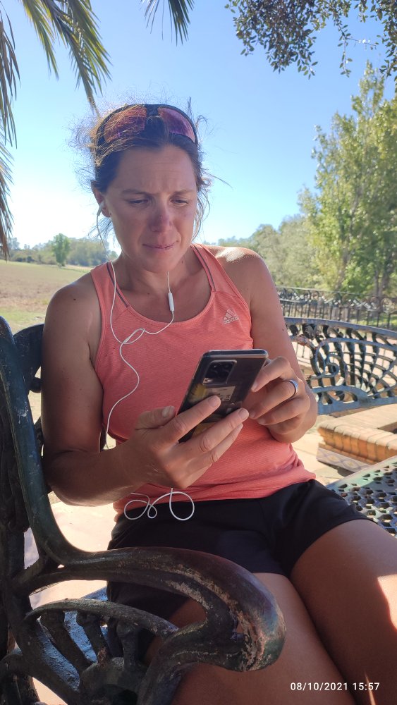 Laetitia va profiter de ce lieu calme, pour terminer la vidéo du Pico Veleta pour YouTube.