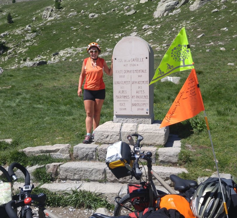 Ce matin réveil dans ce camping où il fait frais, mais rapidement la boule de feu brille dans un ciel uniformément bleu ce qui paraît-il est synonyme d’évasion. Cela réchauffe notre carcasse et nous partons pour les sept kilomètres qui nous séparent du col de la Couillole et ses 1678 mètres, une montée tranquille en-dehors d’un passage à 10% dès le deuxième kilomètres et un final à 8,8%.
