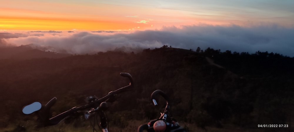 Au matin l’aurore est éblouissante, la masse nuageuse qui se déplace dans un grand silence enveloppe les vallées. Allons nous pouvoir profiter du lever de l’astre luisant ?