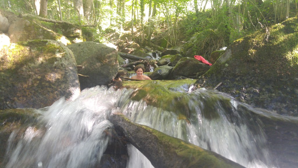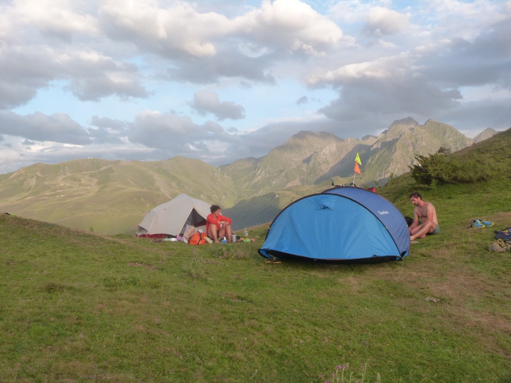 Depuis l’école primaire où nous devions apprendre les fleuves et leurs affluents par cœur, j’entends parler de la Garonne et bien je me rend compte que de la rencontrer me comble d’une frustration. Et c’est donc avec encore plus de plaisir que nous allons la suivre sur quelques kilomètres. Nous nous rapprochons de la frontière espagnole mais sont franchissement n’est pas pour ce soir. Bivouac dans le haut d’une prairie longer par un torrent de montagne fougueux. Cela va nous faire une formidable thalasso à peu de frais.