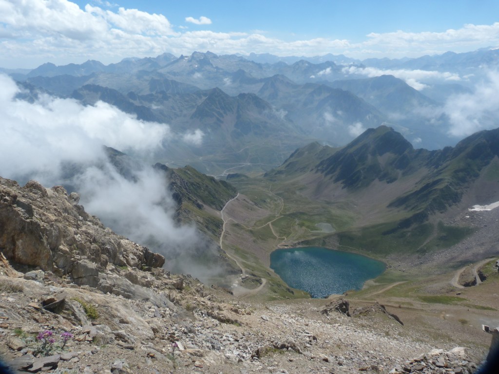 Au départ une piste bien large, nous dominons le lac d’Oncet, arrivés au col de Sencour, le sentier grimpe en lacets dans un pierrier à la pente vertigineuse.